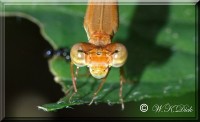 At first glance they resemble Dragonflies and in fact are very similar and even have the same life cycle. However the vast majority of Damselflies are very much smaller than even the smallest Dragonfly. Damsels are usually (with a few exceptions) no thicker than a piece of cotton, with large Bulgy eyes, as pictured below.