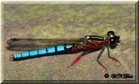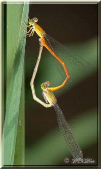 The easiest way to distinguish a Damsel from a Dragon is its wing position at rest, most Damsel flies from our area rest with their wings folded across their backs, as pictured below.