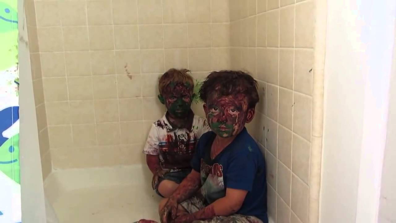 Two brothers and a bit of mischief can only result in two faces -and a house- covered in paint. When their father puts them in the shower, a stern punishment awaits the boys. That's if their father can stop himself from laughing.