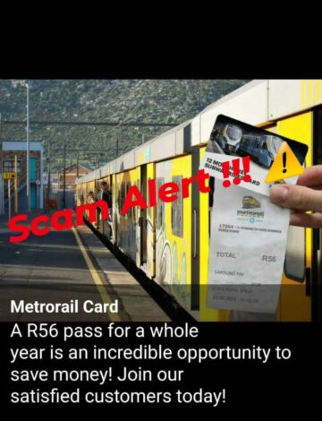 Local newsPRSA spokesperson, Andiswa Makanda said the scammers promise unlimited annual train travel passes for R 56.
