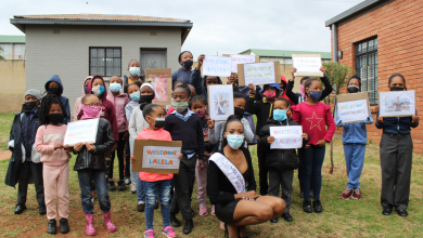 Primary School learners interact with Miss SA 2021 Lalela Mswane, a few days after she is crowned.