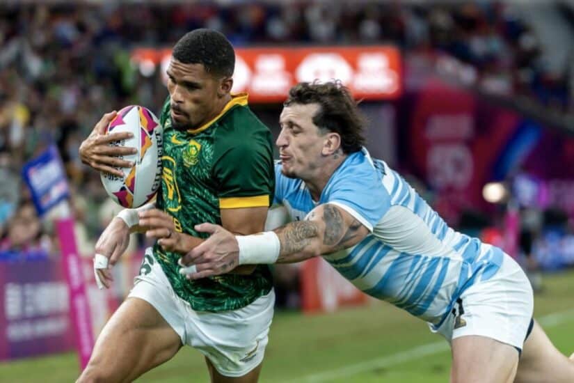 Needing a big win against Argentina to reach the quarter-finals, the Blitzboks raced into a 12-0 lead after tries from Sebastiaan Jobb and Ryan Oosthuizen.