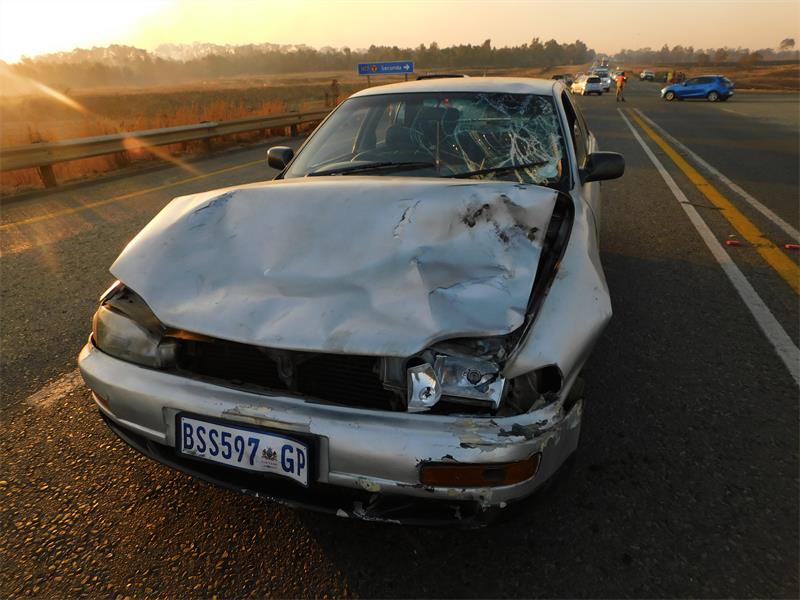 Local newsA man was driving a sedan on his way home when the cow crossed the road; the man had no…
