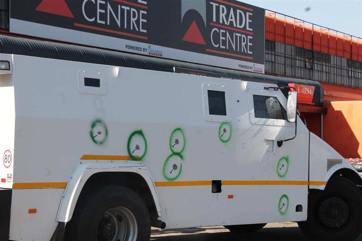 According to Springs police spokesman Captain Johannes Ramphora the guards were on their way out of the building walking towards their armoured vehicle, when one armed robber surprised them.