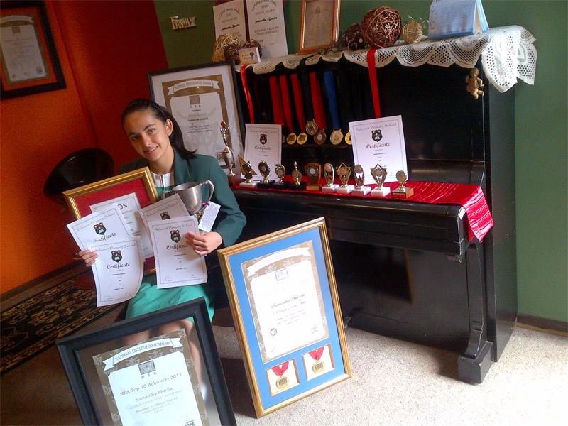 She was named the dux (girl) of Selcourt Primary School for 2013 and has acheived the remarkable feat of obtaining distinctions from Grade 5 to Grade 7 as well as getting top student of her class in Grade 7.