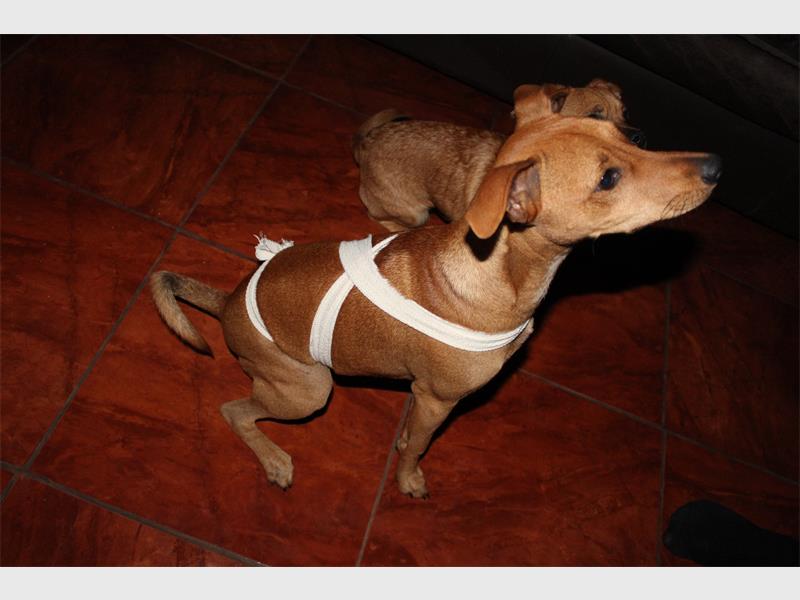 • Cross the ends underneath and bring the ends back up to the dog’s back.