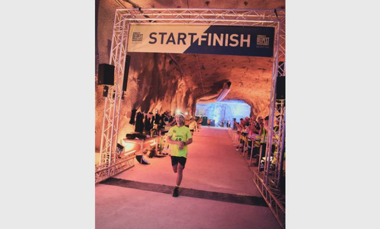 The marathon set a new Guinness World Record (GWR) as the deepest run, with 60 runners covering the 42.2km distance in 11 laps of a 3.84km tunnel in 30°C in near-total darkness.