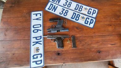 The Springs Crime Prevention Unit arrested two suspects and recovered two firearms with ammunition, a white BMW and false number…