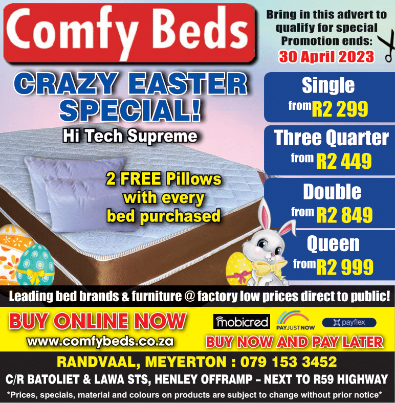 HomeAdsComfy Beds AdsLifestyle Comfy Beds April 20, 2023 Crazy Easter special! Less than a minute Facebook X LinkedIn Tumblr Pinterest WhatsApp Telegram Share via Email Print April 20, 2023 Crazy Easter special! Less than a minute Facebook X LinkedIn Tumblr Pinterest WhatsApp Telegram Share via Email Print
