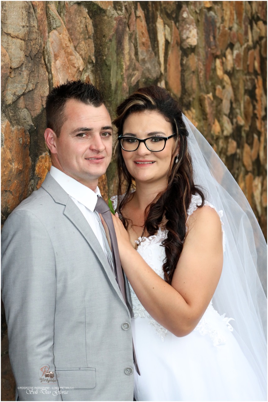 Ons huwelik is vir my en my man (Jaco) spesiaal omdat ons elke dag kan sien met watter kosbare juweel jy ‘n lewenspad mee stap, om mooi te sien waar hulp vandaan kom in storms en om hand aan hand die lewe saam aan te pak. Dat ons as ‘n getroude paartjie onvolmaak is maar wel saam met mekaar gaan groei- al lyk ons troufoto’s dalk so volmaak.