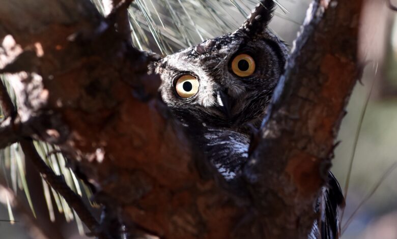 Die uiltjie het eers bietjie onseker in die draagbare hok gesit, maar nadat Mauritz hom uitgehelp het, het hy dadelik gevlieg en almal vanuit sy gunsteling boom beloer.