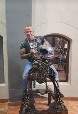 Hy was bekend vir sy fris bo-arms en tatoeëermerke wat hom dalk intimiderend kon laat voorkom, maar volgens een van sy motorfietsmaats was hy in werklikheid “so sag soos ‘n lammetjie”.