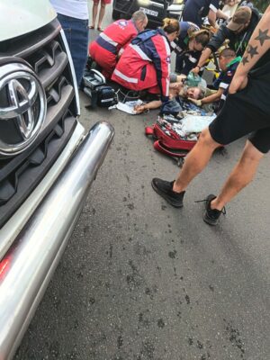 Die gryskop-man wat daagliks daar bedel is omstreeks 14:15 deur ‘n voertuig getref.