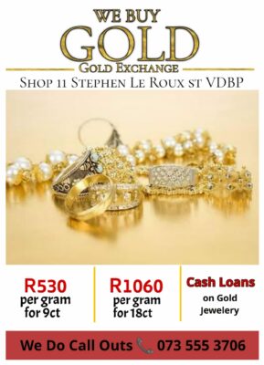 We’ll buy your pure gold articles at R530 per gram for 9ct and R1060 per gram for 18ct!