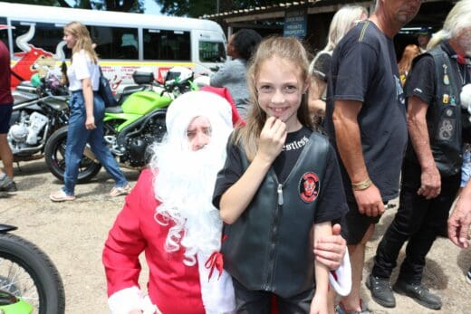 Hierdie jaar is die massa motorfietse ook vergesel deur ‘n party bus en soos gewoonlik het Kersvader heel voor op ‘n bakkie gery, terwyl ‘n ambulans die agterhoede gedek het.