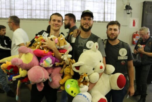 Die bikers het ‘n lang ry gevorm en die hoop teddiebere, poppe en ander speelgoed het al hoe groter geword. Op die verhoog is die bokse met nie-bederfbare kos en badkamerbenodighede gepak.