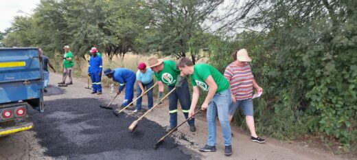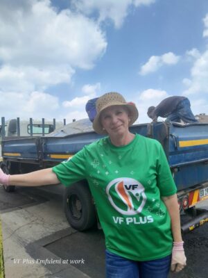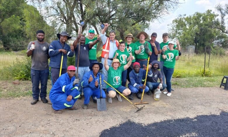 Donderdag was die groot dag. VF+ lede, raadslede en potensiële kandidate het gehelp om die gate met teer te vul. Al die gate is die vorige twee weke reguit gesny en is toe Donderdag met warm teer gevul en platgerol.