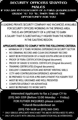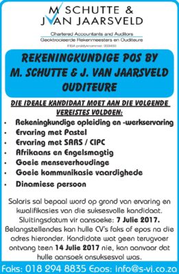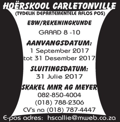 Die volgende sewe poste is beskikbaar.