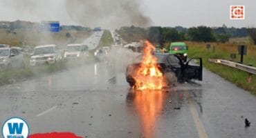 3 injured in N4 crash as car catches fire near Middelburg