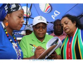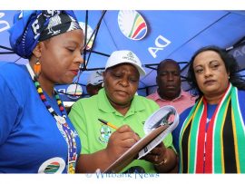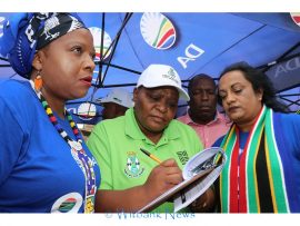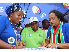 Democratic Alliance leader Mpumalanga Provincial Leader Jane Sithole, DA Whip in the Mpumalanga Provincial Legislature Bosman Grobler, DA Caucus leader Cllr Naritha Naidu joined eMalahleni Ward 18 candidate Salomi Kriel on Friday, March 13 in a peaceful march and handed the memorandum to the Executive Mayor of Emalahleni Cllr Linah Malatjie