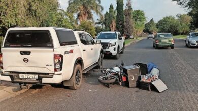 Local newsIt is alleged that the motorcycle driver hit the back right tail light of the bakkie.