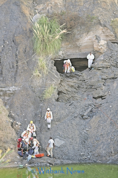 The Mines Rescue Team had to be watchful of the unstable abandoned mine pit when they retrieved the body of Mr Donald Sambo.