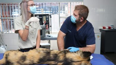 Local news’n Afrika wildehond moes by Witbank Dierehospitaal inboek toe hy sy voorbeen gebreek het.