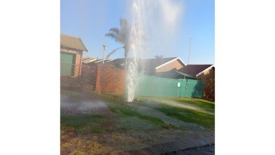 Water spraying sky high in Centaury Avenue, Ben Fleur.
