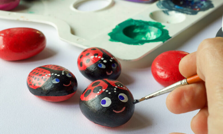 Help your child paint a cute ladybug rock