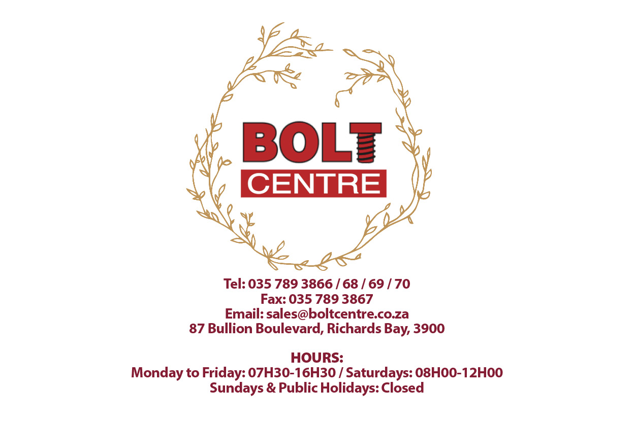 Bolt Centre has been providing excellent service with premium products to meet each customer’s needs for the past 27 years. Located in the hub of Richards Bay, Bullion Boulevard, Bolt Centre specialises in the supply of premium industrial fasteners. The quality fasteners are available in different grades of material and platings to suit each customer’s requirements. A comprehensive range of specialised tools and consumables are available in store to service both the DIY and industrial markets.