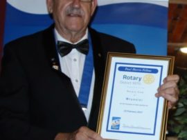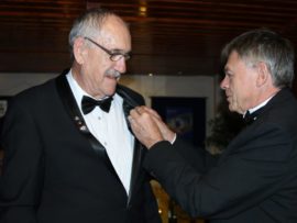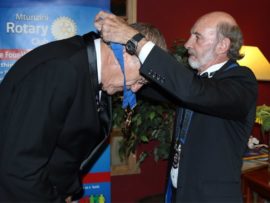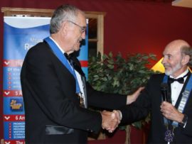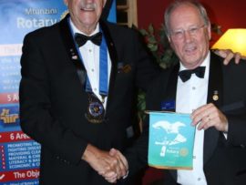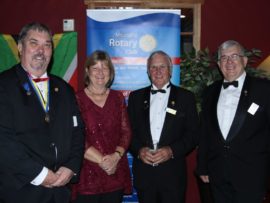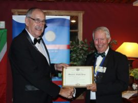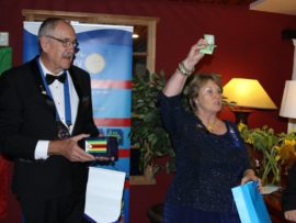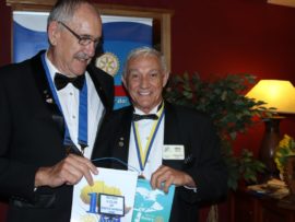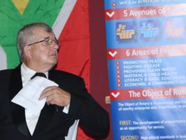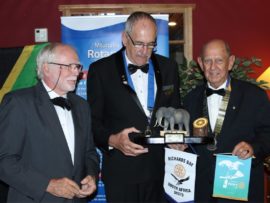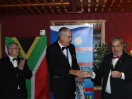 Gifts, banners and wishes of goodwill were presented to president Van der Merwe by representatives of various Rotary districts and clubs.