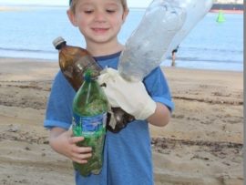 Ethan Campher could not hold all the bottles he found on the beach