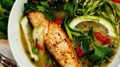 What’s for dinner? Salmon and noodle broth