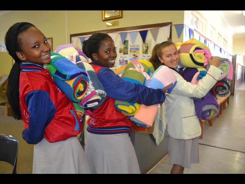 DICE1 000 knitted squares transformed into blankets for the '67 Blankets for Madiba' initiative.