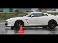Zahid Hassim flies over the wet surface in his Nissan GT-R