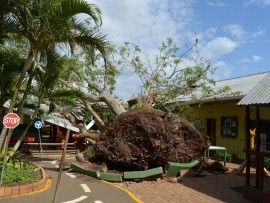 At around 7.30 this morning while the children were preparing to begin their lessons, strong gusts of wind proved too much for the old tree, which eventually lifted from the roots and fell on the playground, landing on one of the classrooms.