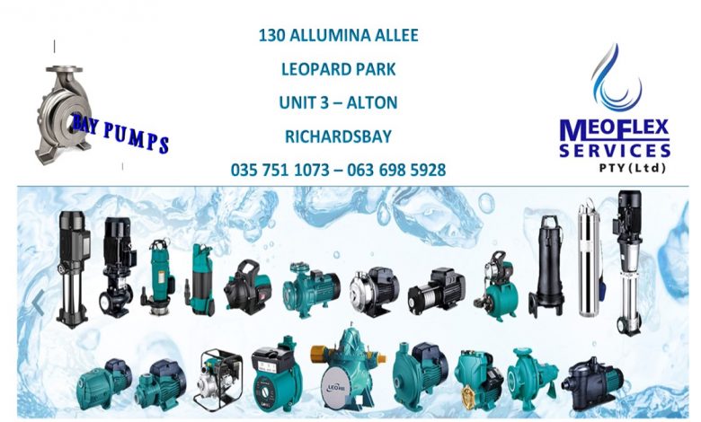 Visit Meoflex at 130 Alumina Allee, Unit 3, Leopard Park, Alton, Richards Bay or log onto www.baypumps.co.za. For enquiries, contact the Meoflex Services office at 063 6985928; Themba 076 0236812 or Douw at 076 670 9923 or email sales@meoflex.co.za