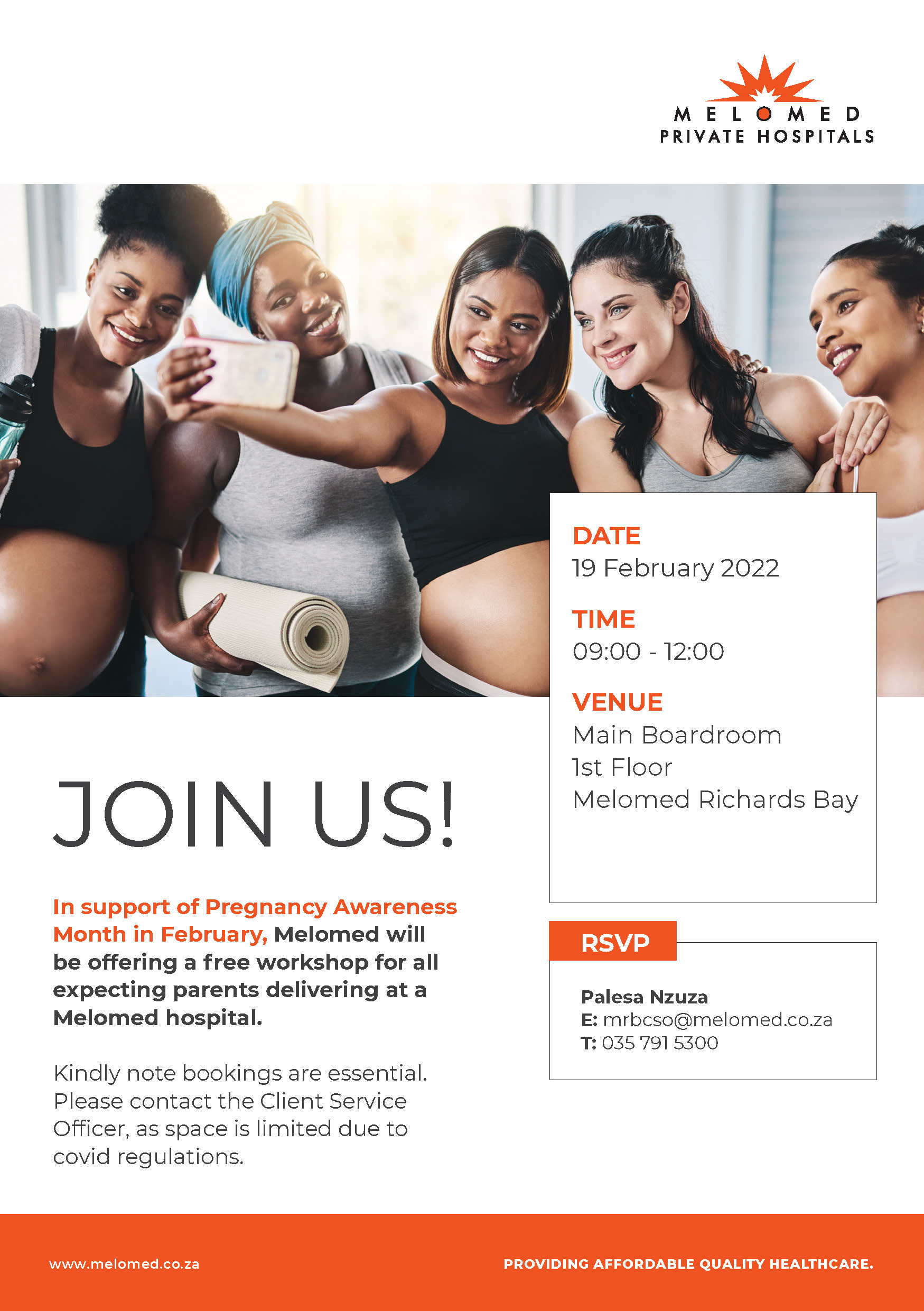 In support of Pregnancy Awareness Month in February, Melomed will be offering a free workshop for all expecting parents delivering at a Melomed hospital
