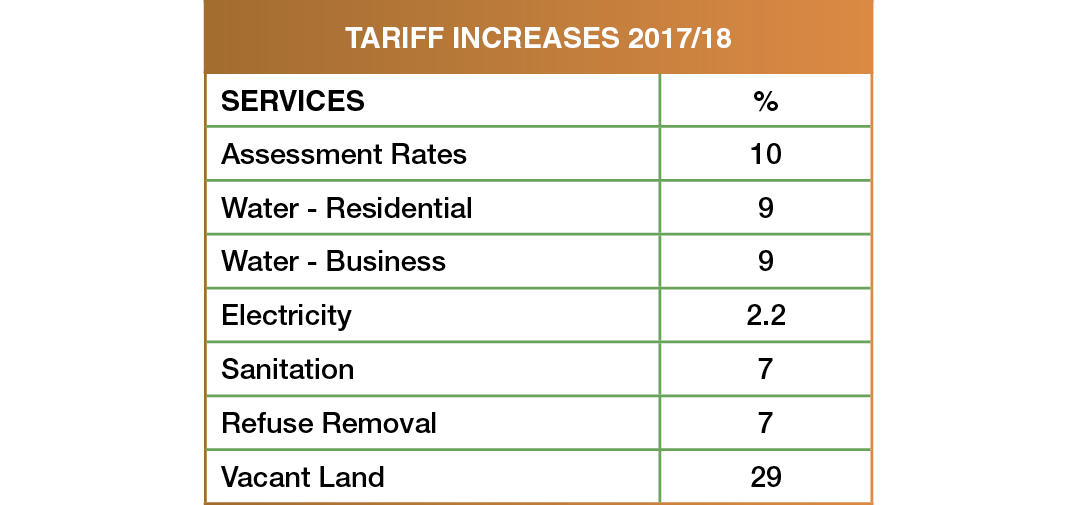 Council has considered all the economic challenges that our consumers are faced with, and have therefore approved tariffs that are considered affordable for the 2017/18 financial year.