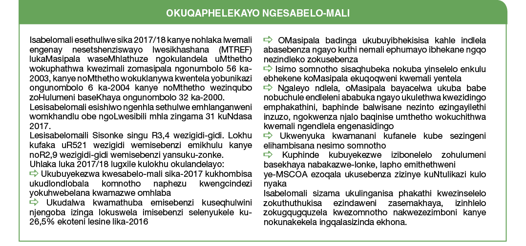 - Ukufaka izimali kwisabelo-zimali nakuhlahlo-mali lwesikhashana lwaphakathi nonyaka lutholakala ku-Section 18 no 19 lwe-MFMA.