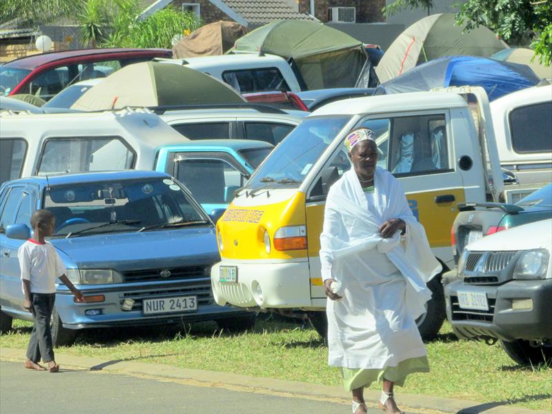 Shembe Church worshippers create a campsite in Richards Bay's Birdswood neighbourhood