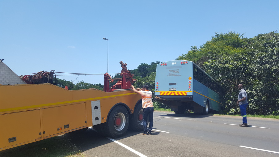 Lucky escape as bus nosedives into greenbelt