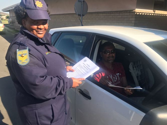 Richards Bay police officers were in fact handing out pamphlets as part of their Mandela Day drive