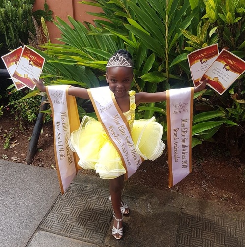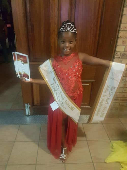 The young Sanele Mtshali was crown Miss Elite SA 2018 Novice 8-10 years Provincial Winner KZN and the Miss Elite SA 2018 Novice 8-10 years Lady of Class title.